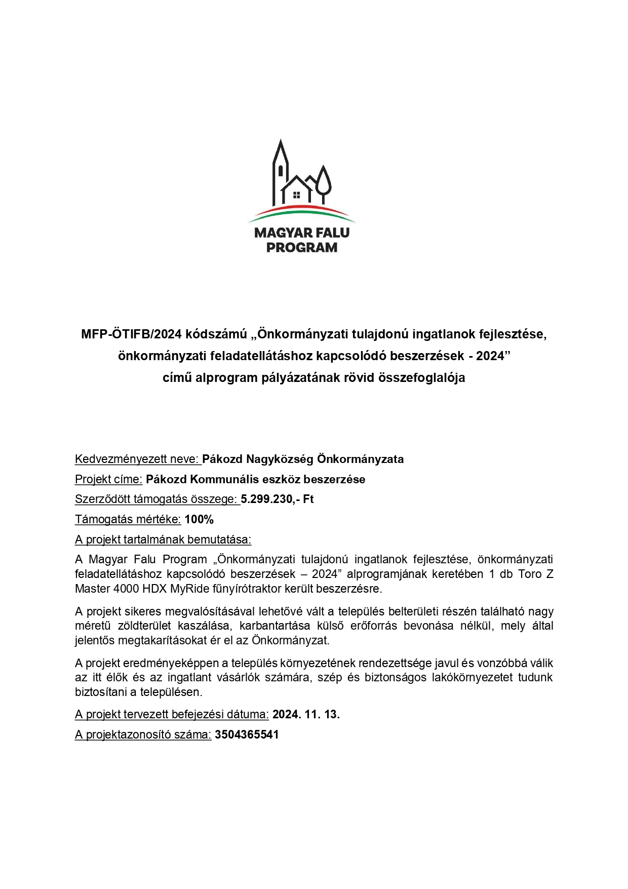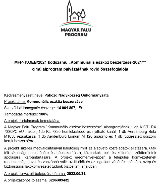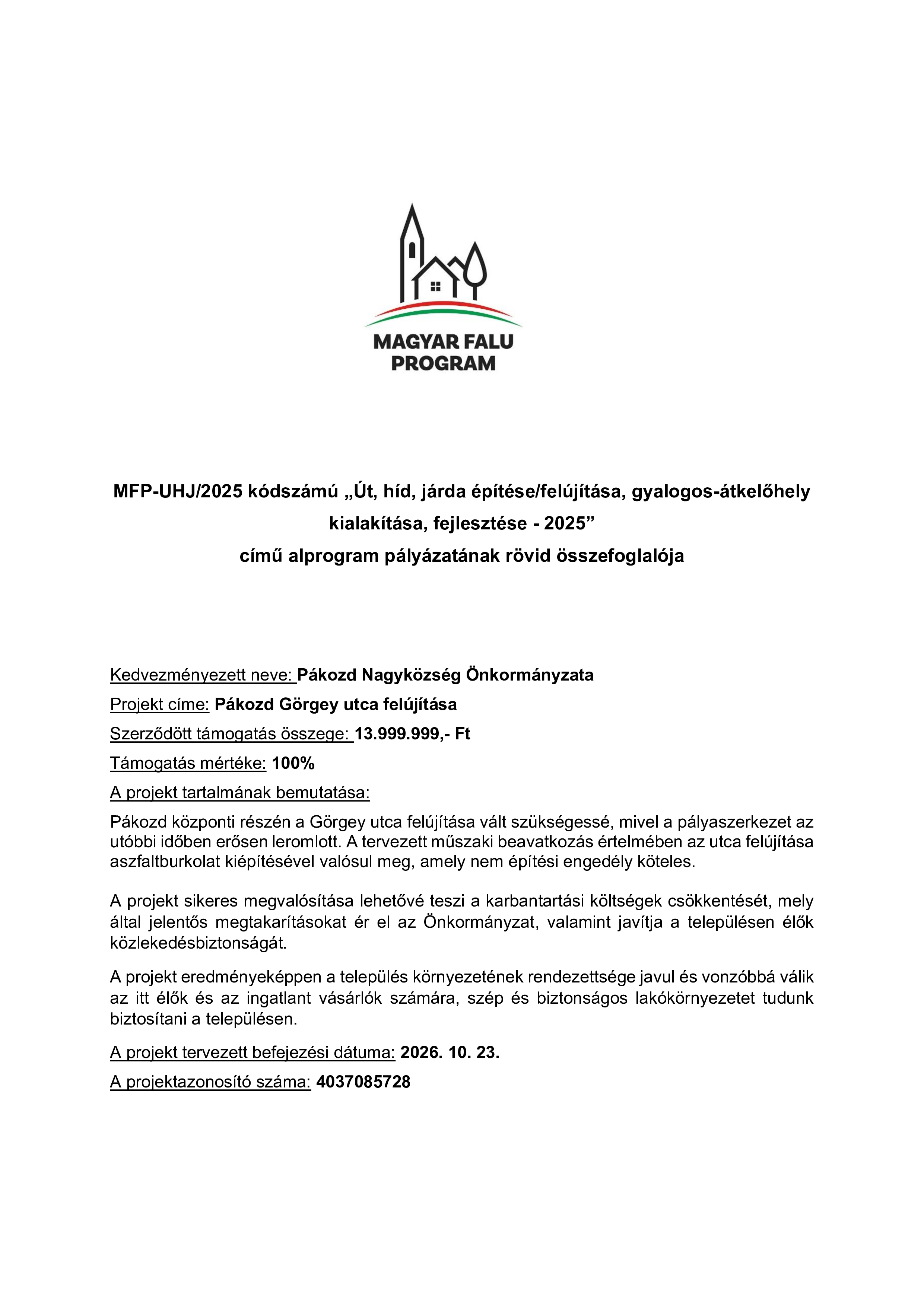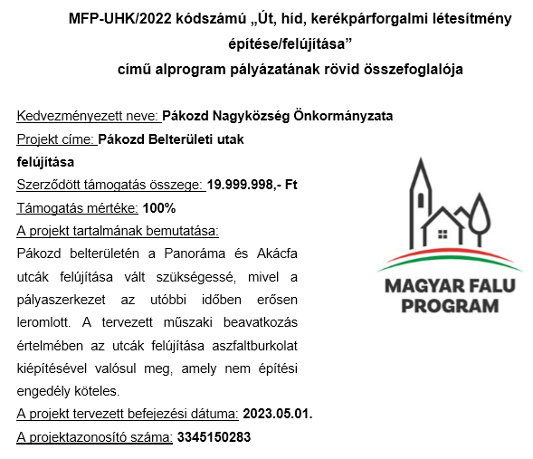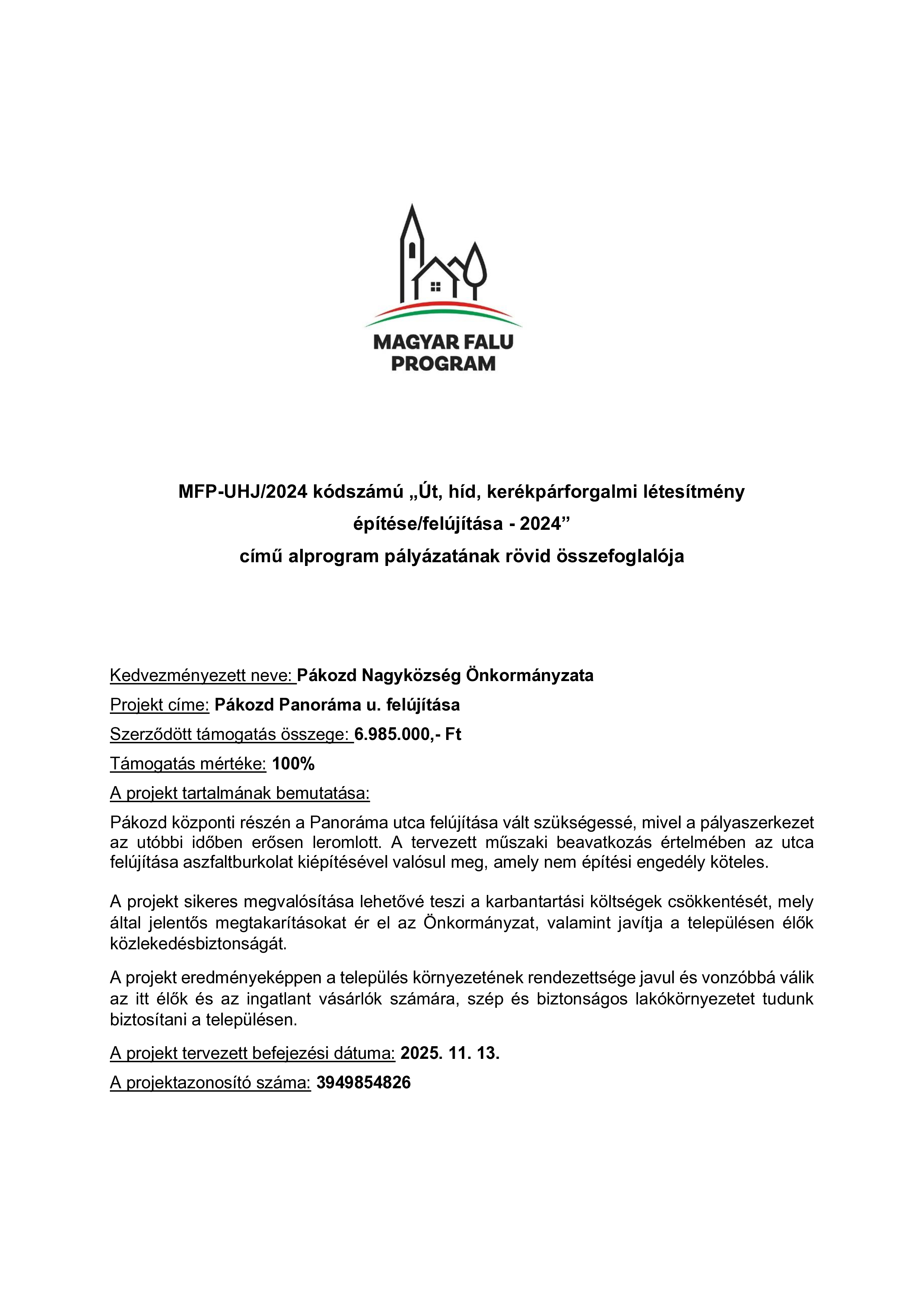 2025.05.29. Magyar Falu Program "Út, híd, kerékpárforgalmi létesítmény építése/felújítása - 2024" Részletek