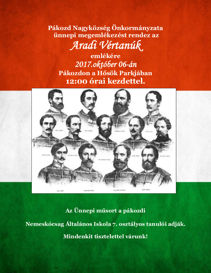 Meghívó Megemlékezés az Aradi Vértanúk emlékére 2017. 10. 06.