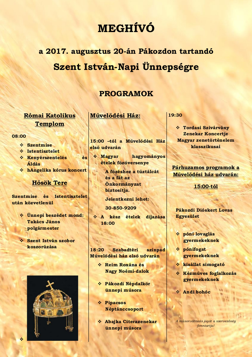 Meghívó - Szent István-Napi Ünnepség