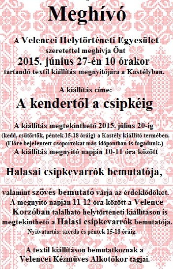 2015.06.27-én, 10 órakor kezdődő textil kiállítás megnyitójára,