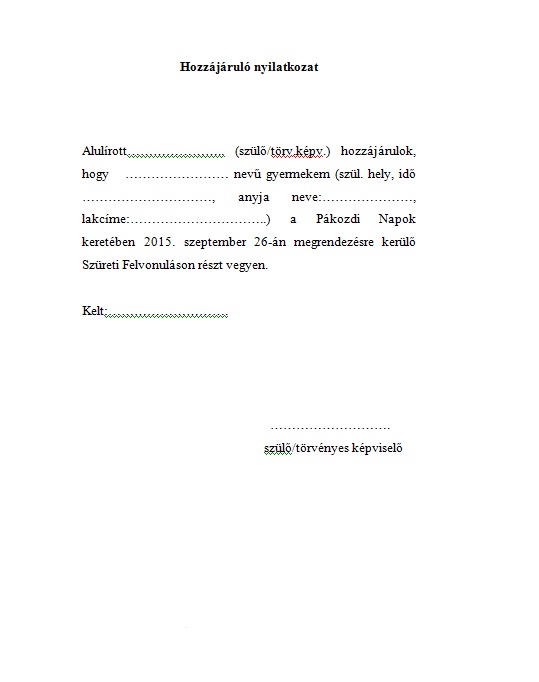 Az alábbi linkről letölthető a hozzájáruló nyilatkozat, mely kitöltve a Kossuth Lajos Művelődési Ház udvarán a felvonulás előtt László Bencének adható le.