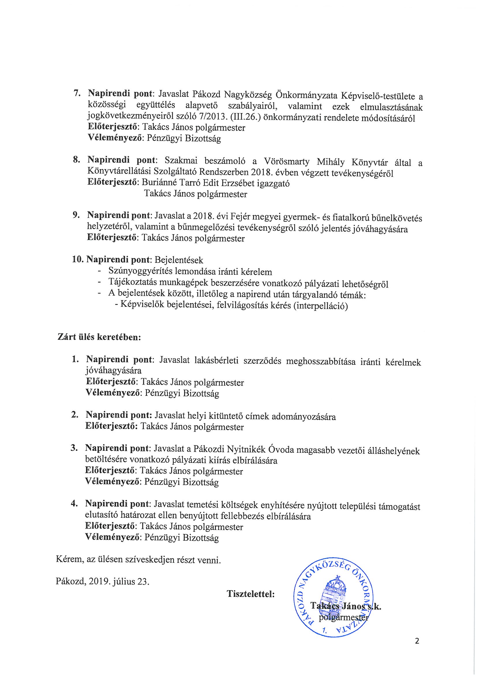 tartja a Pákozdi Polgármesteri Hivatalban, melyre ezúton tisztelettel meghívom.