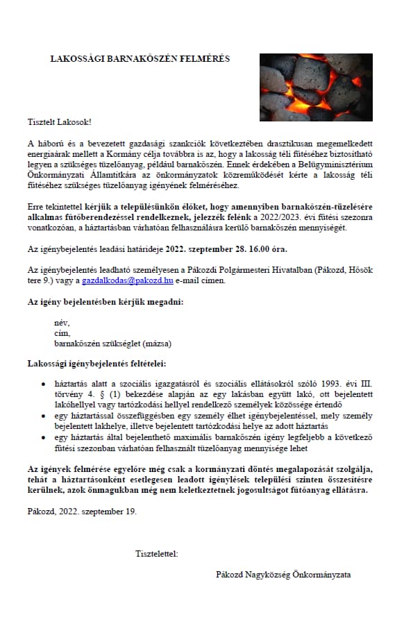 Pákozd Nagyközség Önkormányzata az Innovációs és Technológiai Minisztériummal együttműködve, az 51/2007. (III. 26.) Kormányrendelet alapján kiírja a 2023. évre