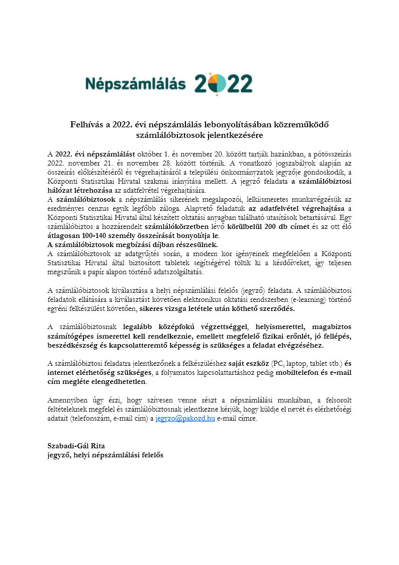 2022.04.25. Meghívó Pákozd Nagyközség Önkormányzata Képviselő-testülete következő rendes ülését 2022. április 25-én 16:00 órakor tartja a Pákozdi Polgármesteri Hivatalban, melyre ezúton tisztelettel meghívom. A meghívó a következő linken érhető el. Részletek