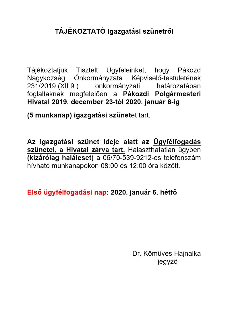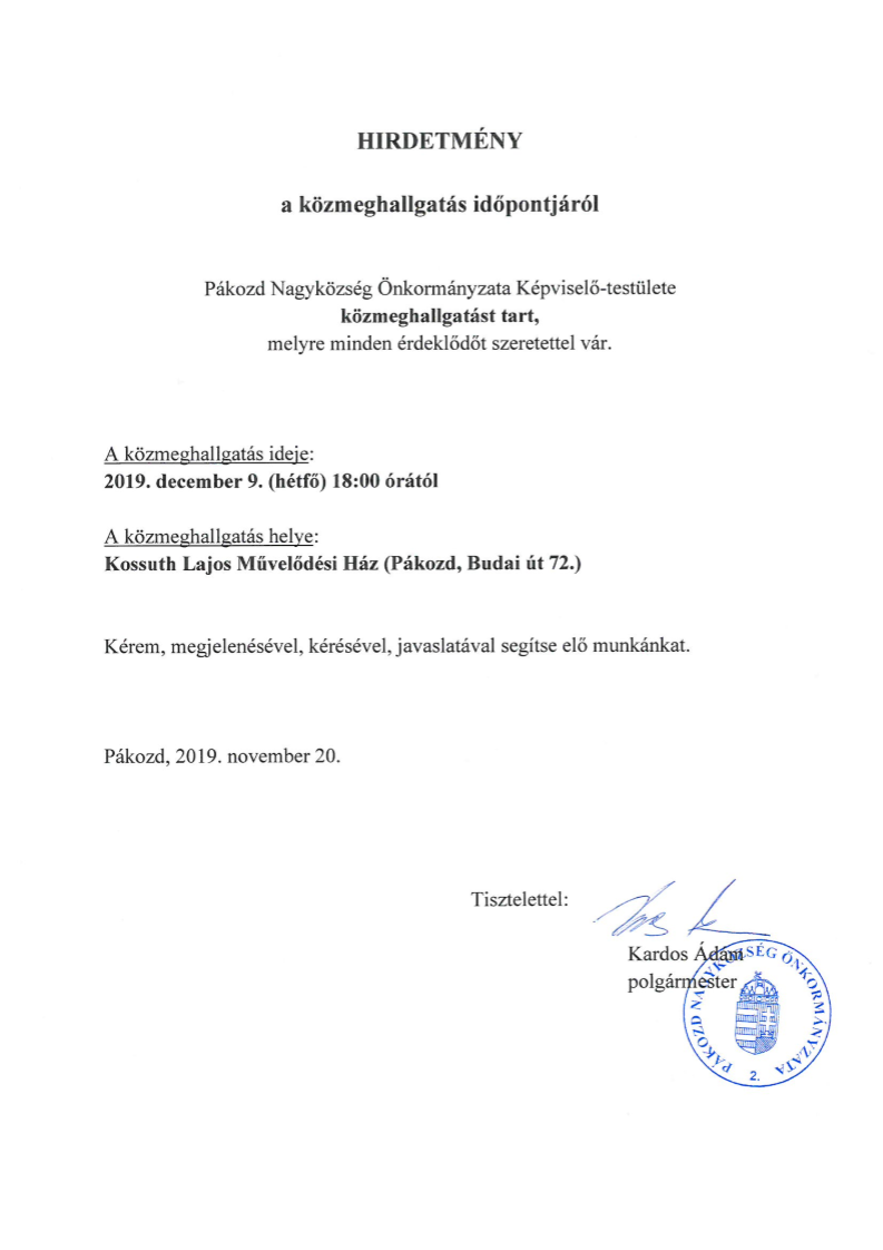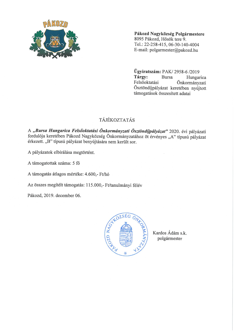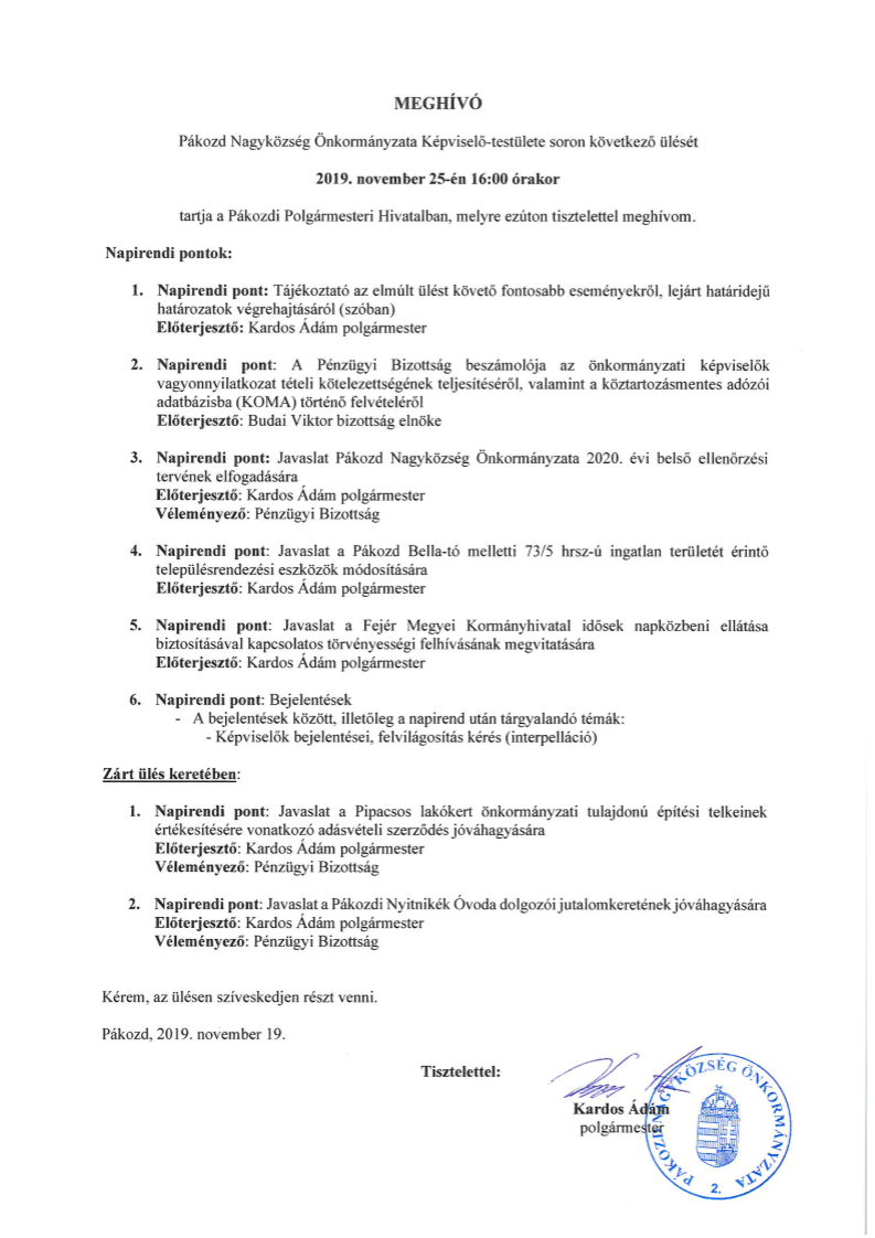 Pákozd Nagyközség Önkormányzata Képviselő-testületének