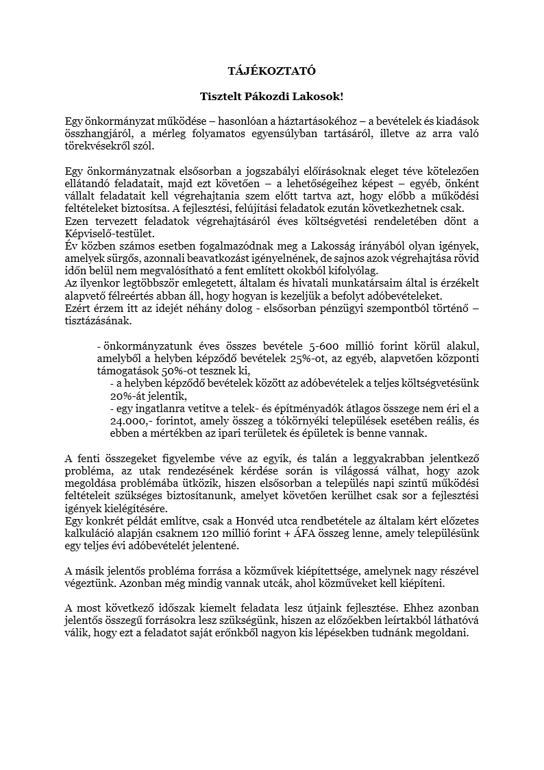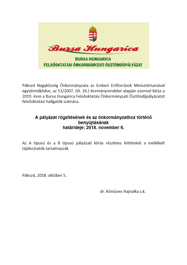 2018.10.25. Meghívó MEGHÍVÓ Pákozd Nagyközség Önkormányzata Képviselő-tesültete soron következő ülését 2018. október 29-én 16:00 órakor tartja a Pákozdi Polgármesteri Hivatalban, melyre ezúton tisztelettel meghívom a meghívót az alábbi linkre kattintva érheti el. Részletek