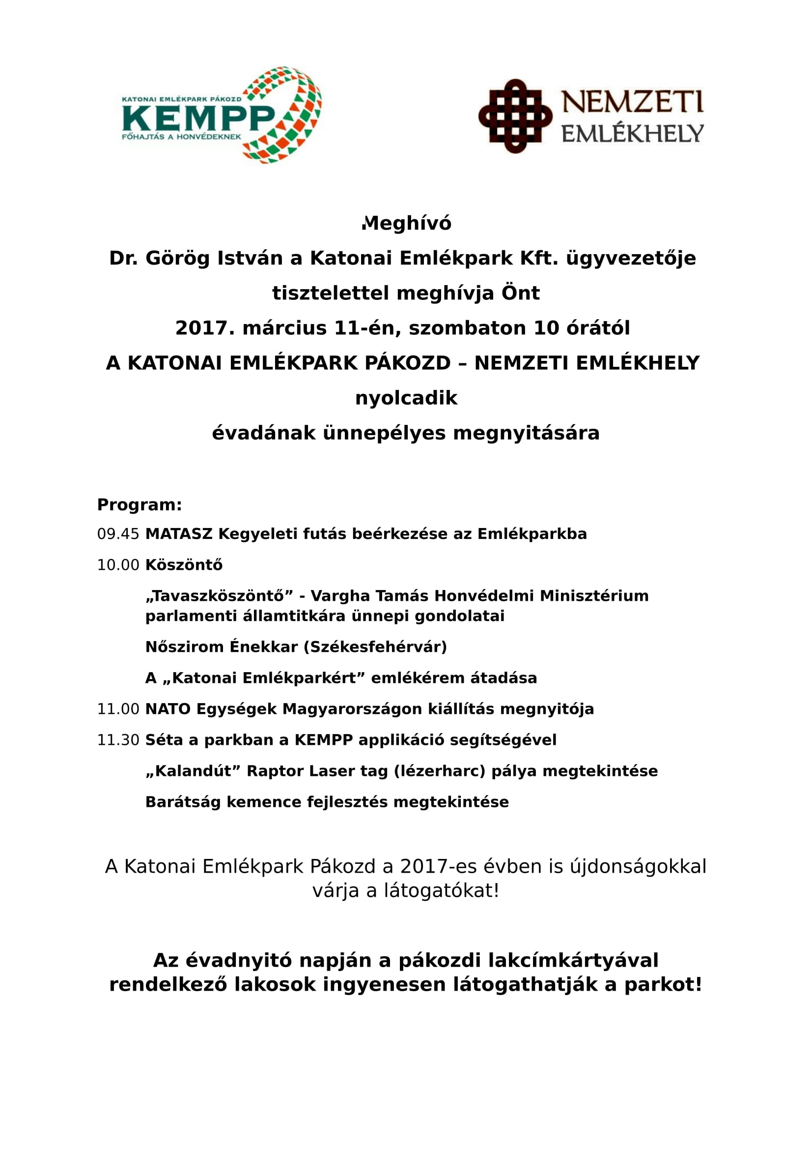 Regisztráció nem szükséges, de SEGÍT, ha személyesen vagy telefonon jelzi érkezését.