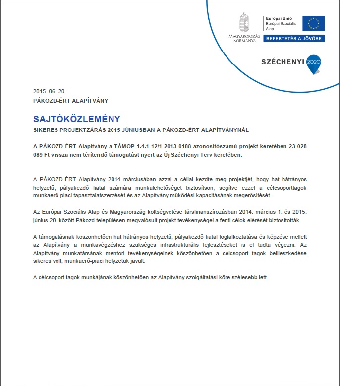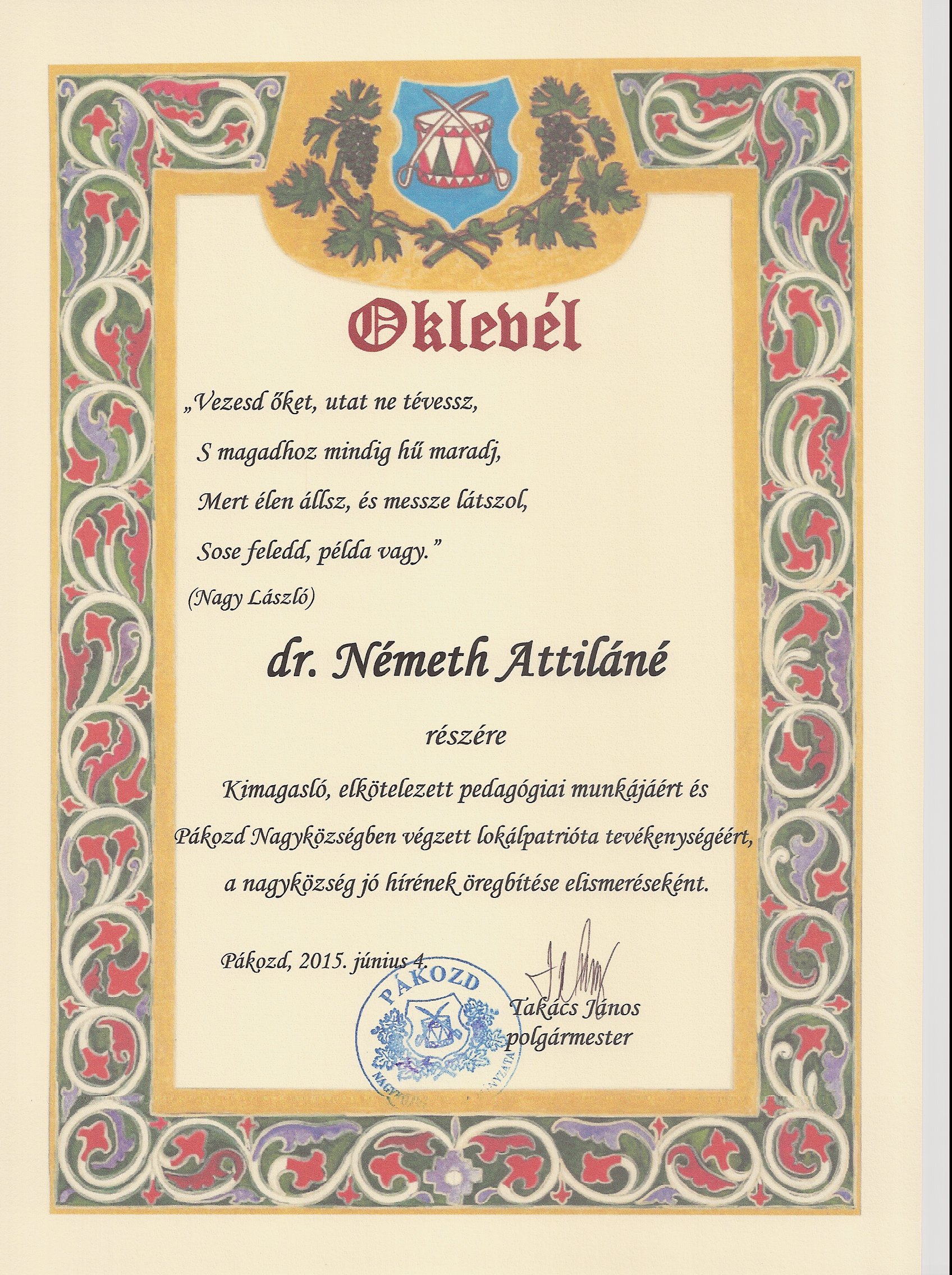 A Képviselő-testület nevében ezúton köszönjük meg oktatási intézményeinkben dolgozó pedagógusok elhivatott munkáját.