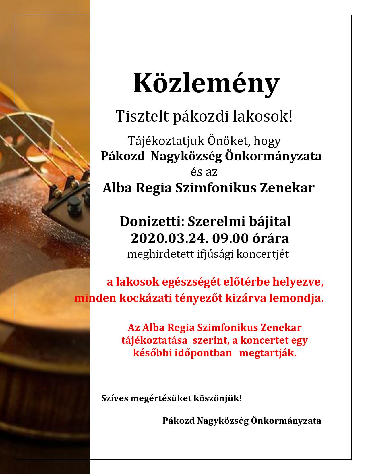 Elmarad a március 24-i Alba Regia Szimfonikus Zenekar Koncertje