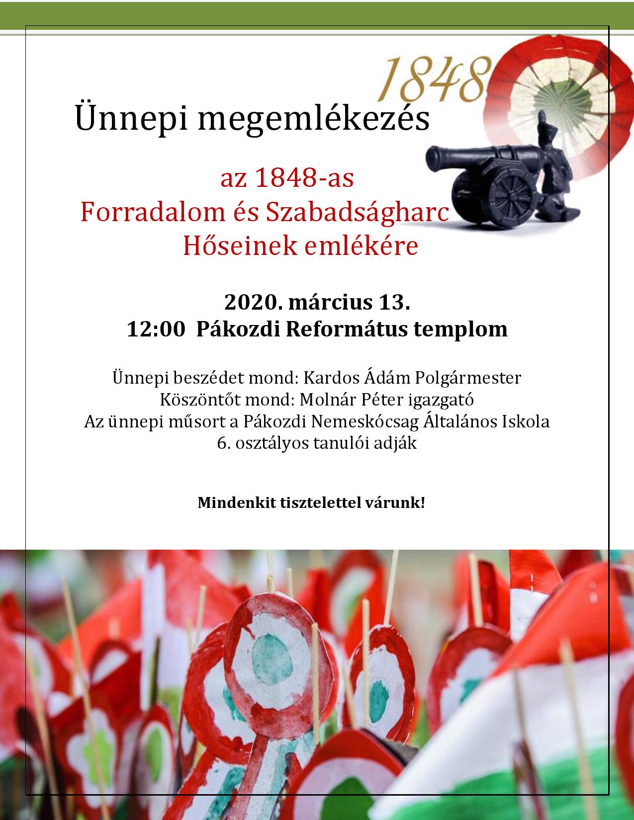 1848 Március 15-i Megemlékezés Pákozd 2020.03.13