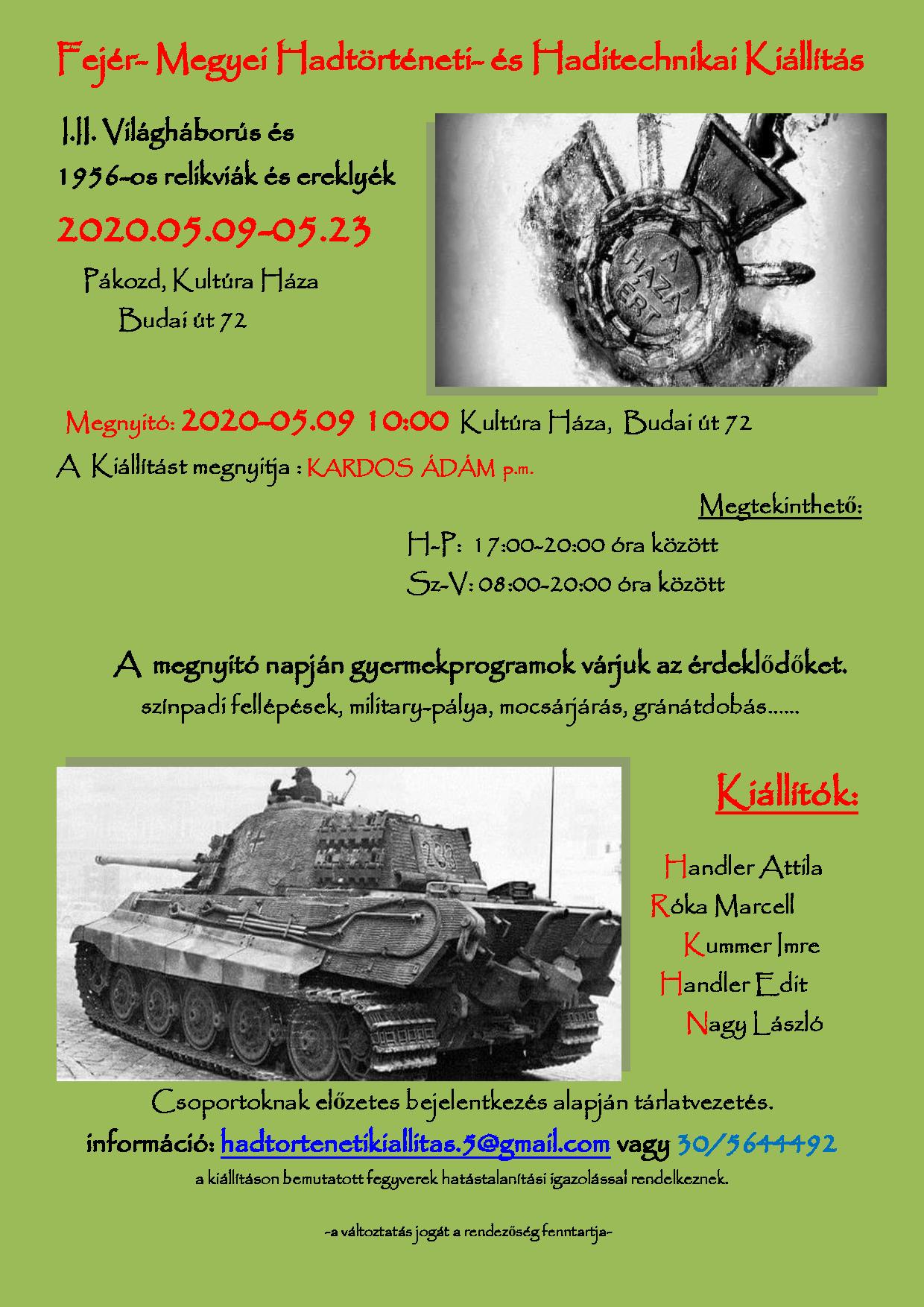 Hadtörténeti Kiállítás Pákozd 2020.05.09-23