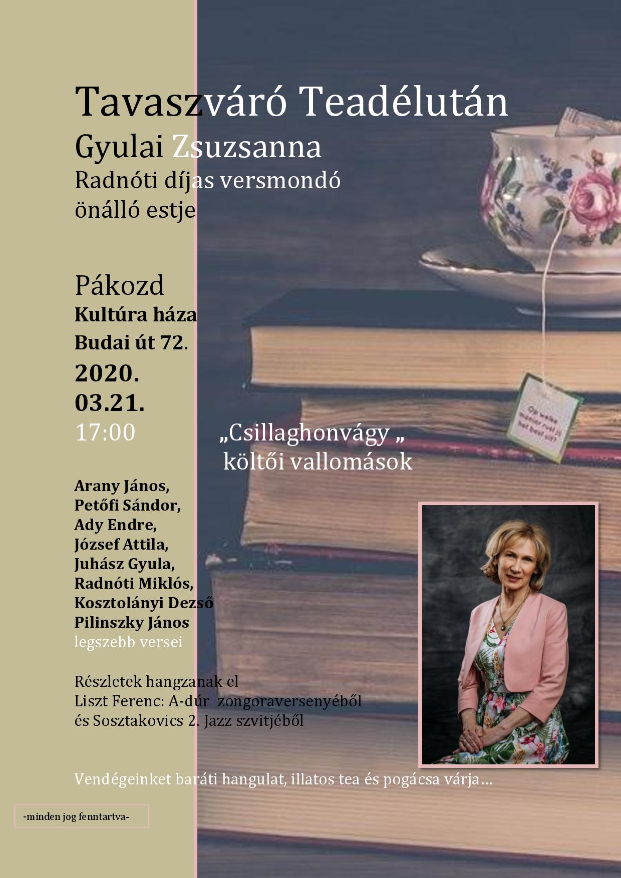 Tavaszváró teadélután Gyulai Zsuzsannával Pákozd 2020.03.21.