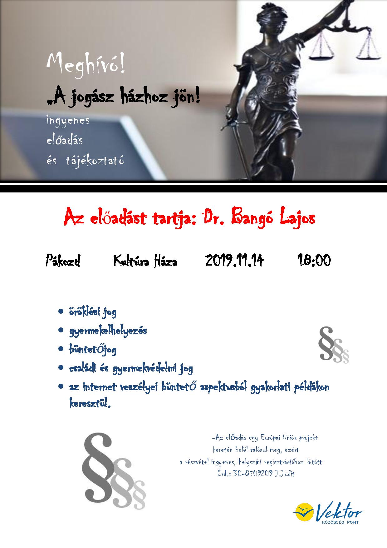 A jogász házhoz jön! ingyenes előadás Pákozd