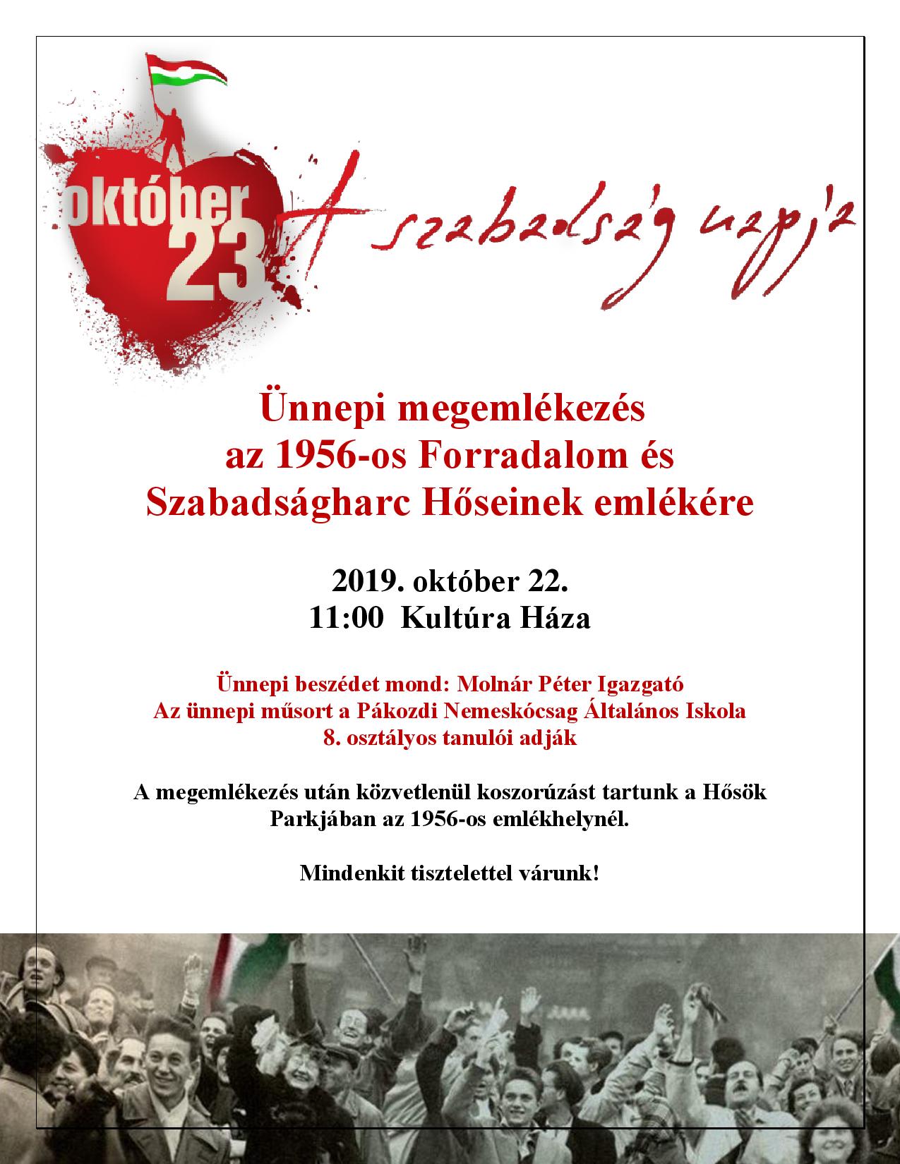 Október 23-i Megemlékezés Pákozd október 22. 11:00 Kultúra Háza