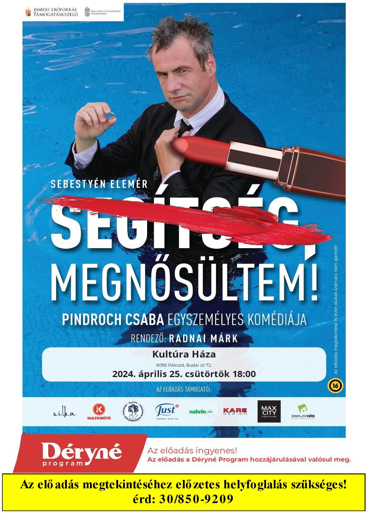 2024.02.26. Pindroch Csaba-Segítség megnősültem!!!! 2024.04.25. 18:00 Pákozd Művelődési ház Részletek