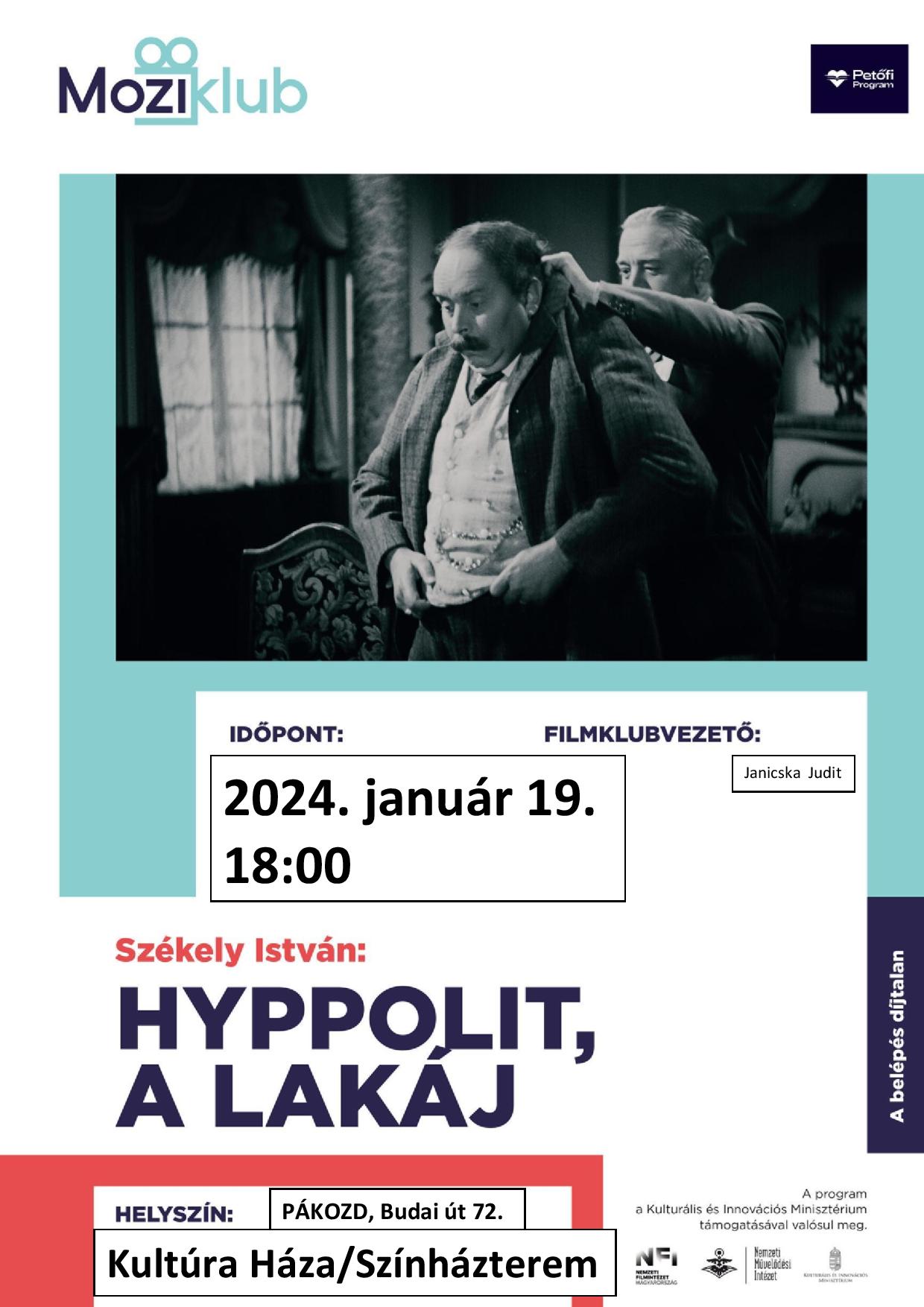 "KULTFILM" Moziklub Pákozdon 2024.01.19 Hyppolit a lakáj-Kultúra Háza