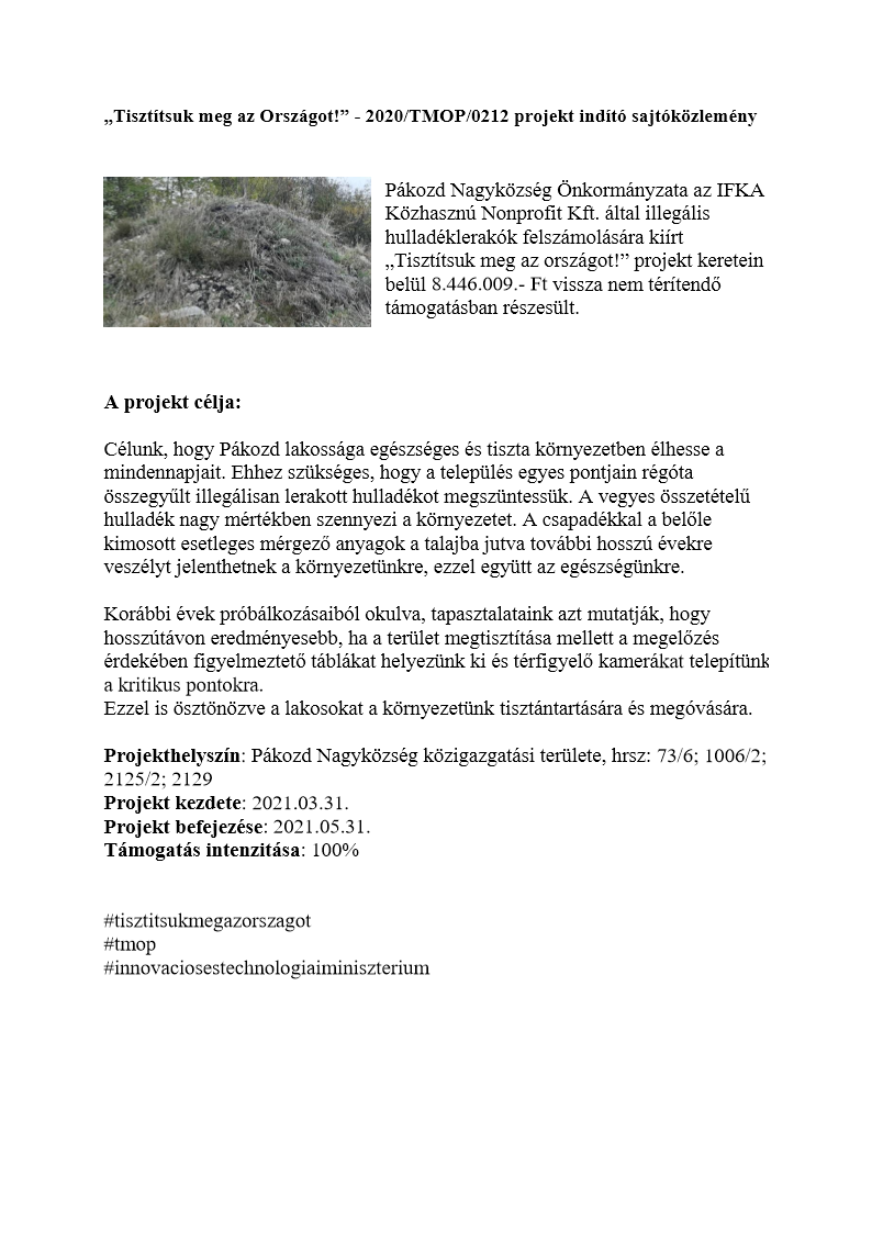 - Projektjét az előzetes helyszíni szemlék lebonyolításától kezdődően mindenki saját felelősségre megkezdheti, azaz a felmerülő költségei egy nyertes pályázat esetén elszámolhatóakká válnak ezen időponttól.